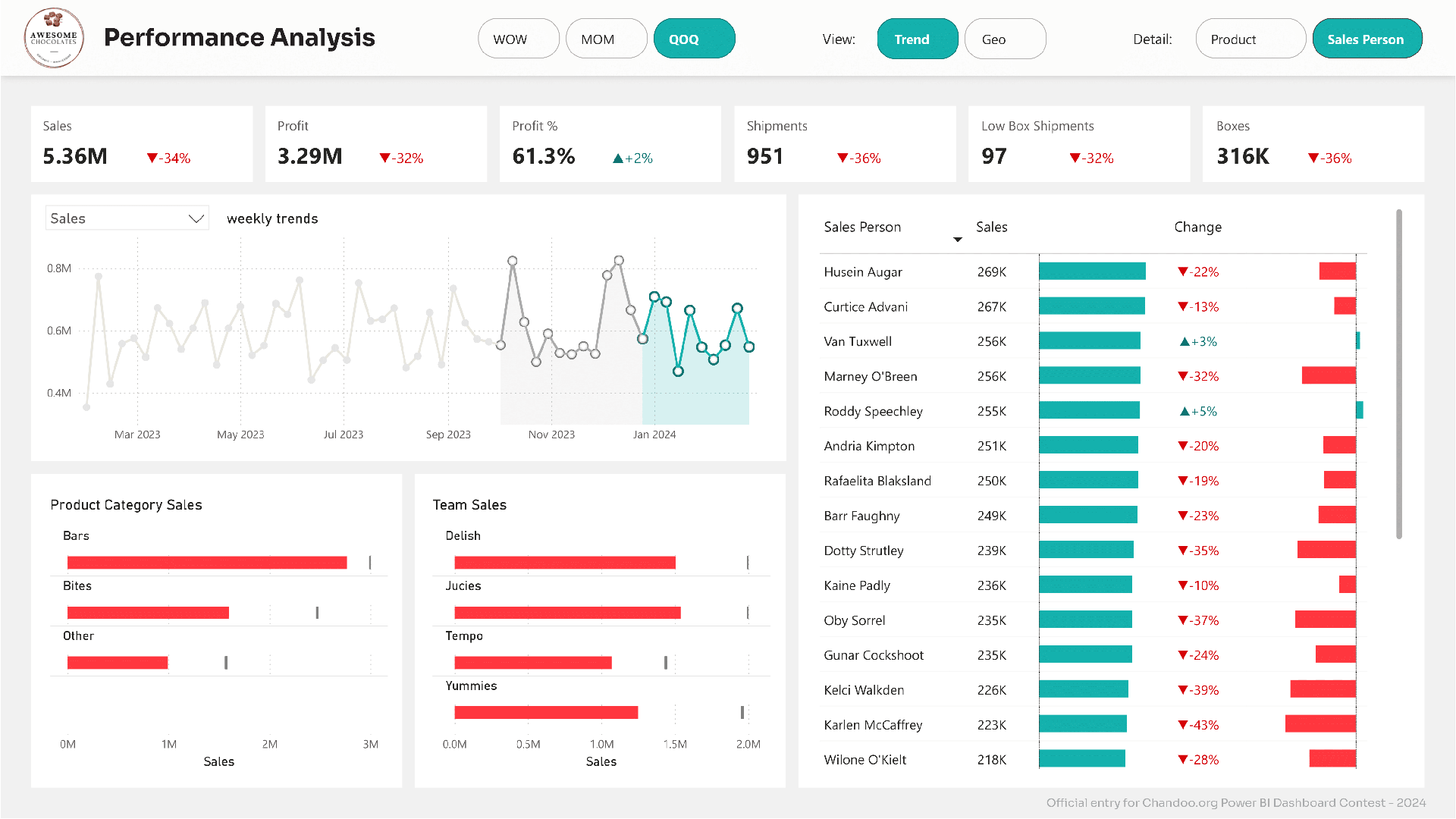 The scenario was to create a dashboard for the CEO of the awesome chocolate company and provide performance insights.