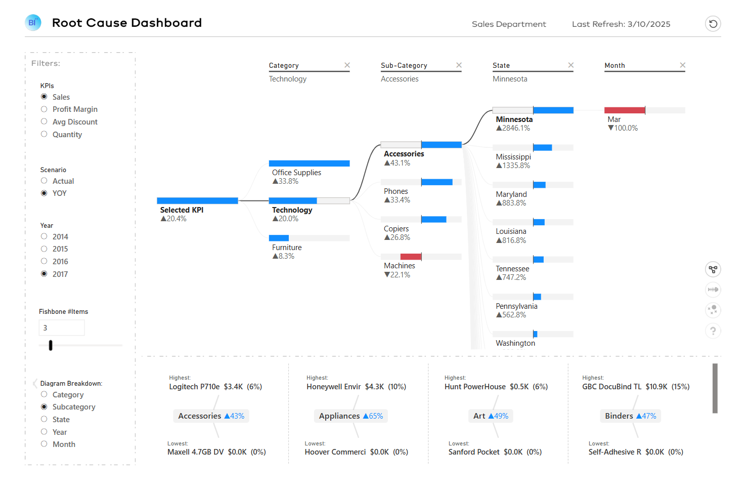A BI dashboards that empower users to go beyond surface-level reporting and truly understand the "why" behind their data. This Root Cause Analysis dashboard is designed to do just that with ππ²π°πΌπΊπ½πΌππΆππΆπΌπ» π§πΏπ²π², ππΆππ΅π―πΌπ»π², and ππΆπππ²πΏ π£πΉπΌπ visuals.